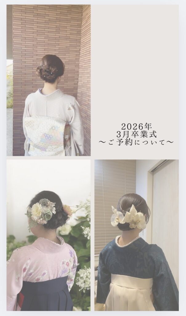 既に3月のご予約が埋まりつつあります。 特に小学校、中学校の卒業式、大学の長崎市内近郊の日程でご検討中のお客様におかれましては できるだけお早めのお問い合わせをお願いできればありがたいです。 (図々しくすみません) 卒業式、入学式などは時間帯... -